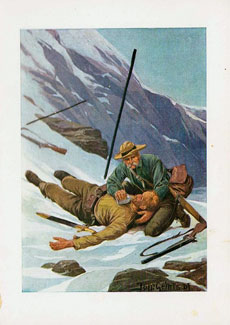 stürzt ab, wird aber vom Freund Campell gefunden und gerettet.