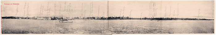 Tsingtau-Panoramen, die zusammengelegt auf stattliche 140cm