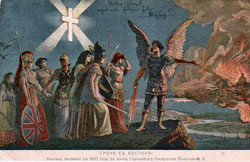 Erzengel Michael). Rechts das fertige Bild von Prof. Knackfuss, wie