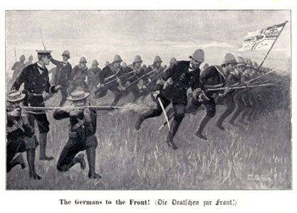 auf das Fort befahl er die deutschen Seesoldaten an die
